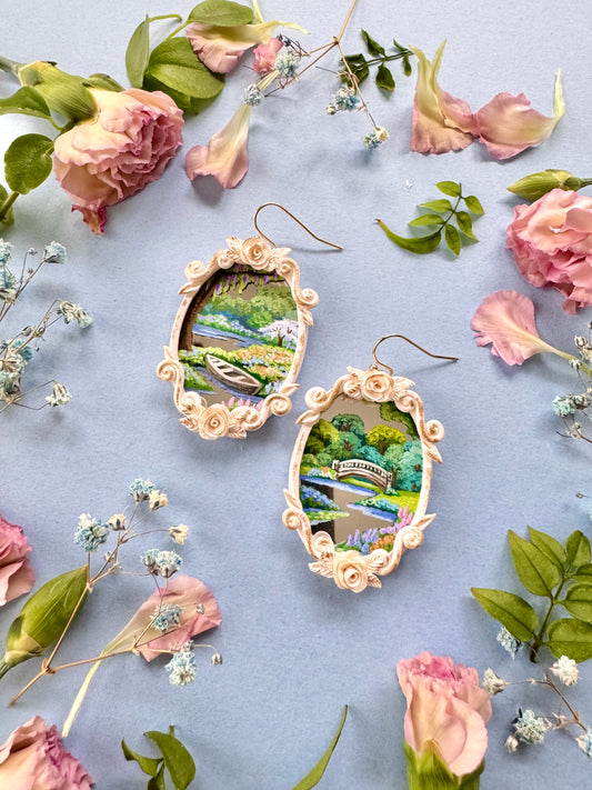 Boat + Garden Hand Painted Landscape Mirror Earrings - Jewelry
