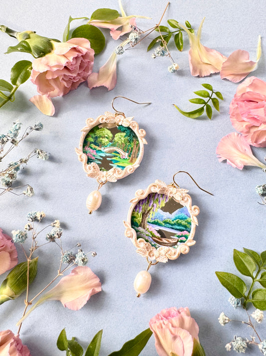 Boat + Garden Hand Painted Landscape Mirror Earrings - Jewelry
