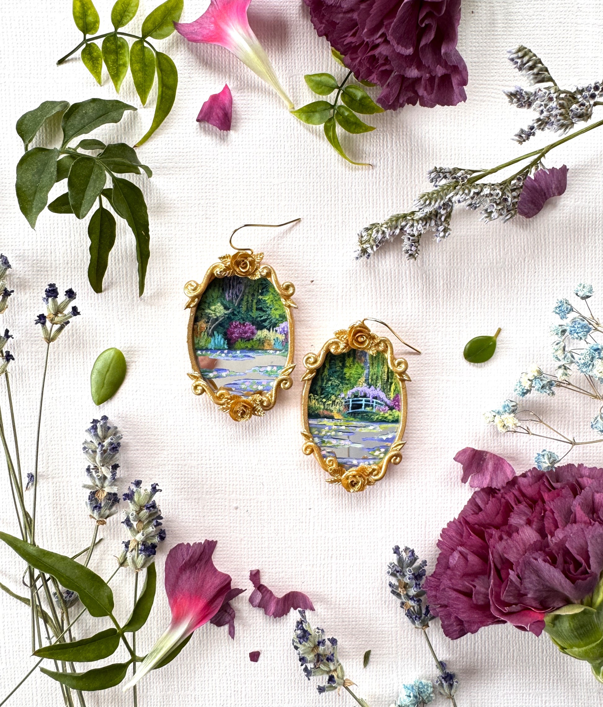 Monet Inspired Hand Painted Landscape Mirror Earrings - Jewelry 01